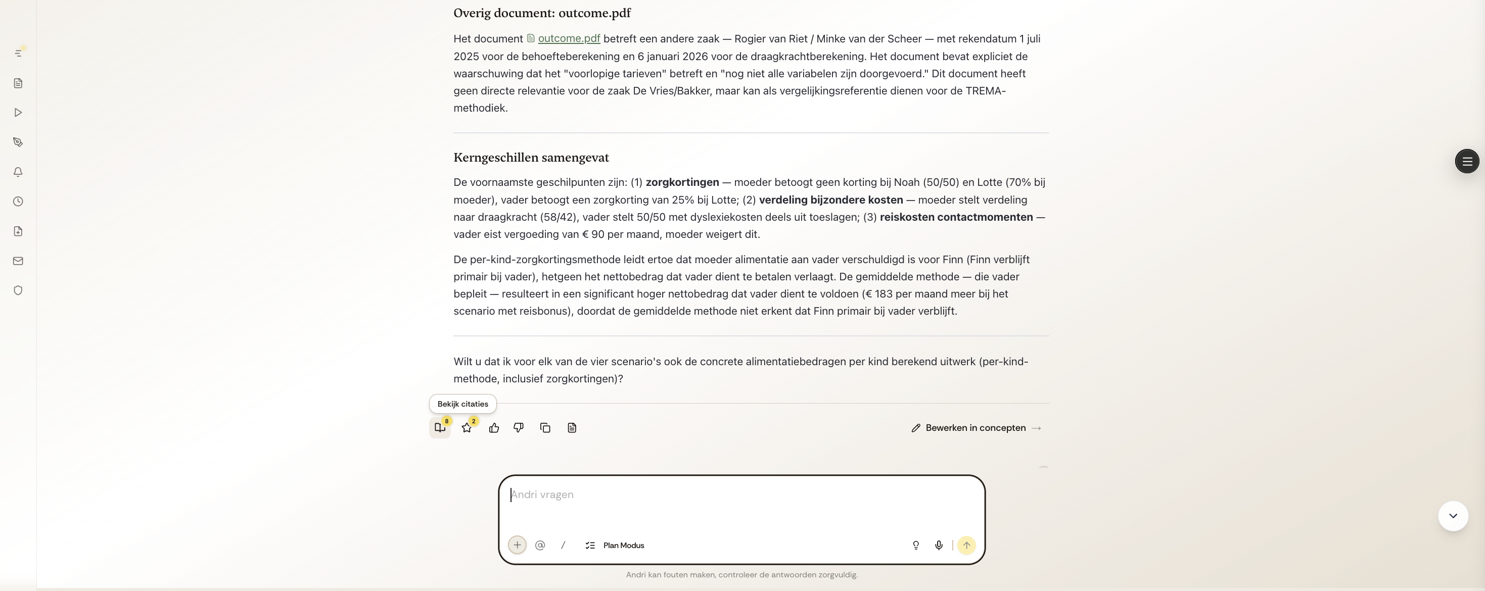 When Andri answers a question, it cites the specific documents or cases it used to formulate the response. Citations appear as clickable references linked to the source material.